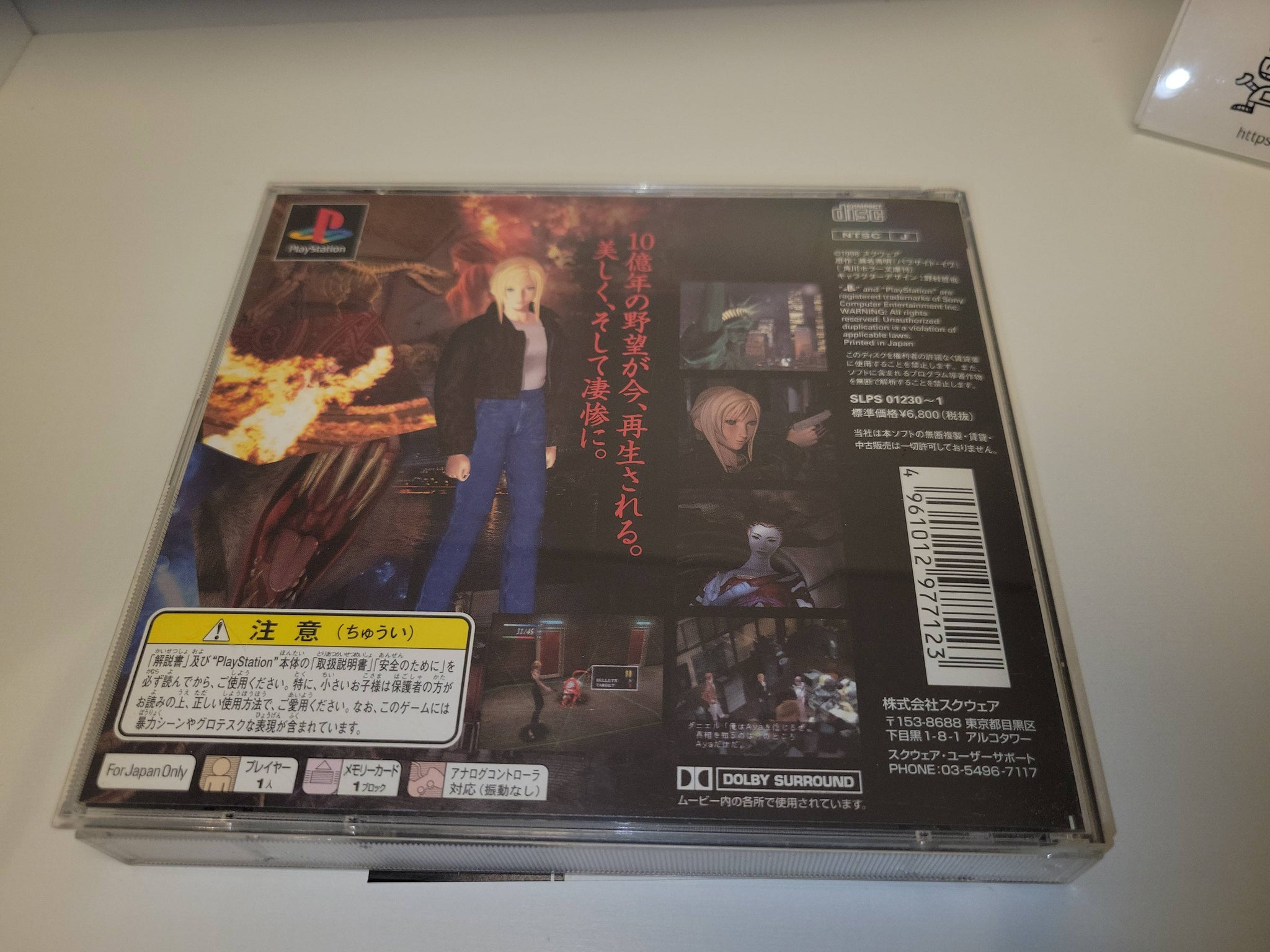 Parasite Eve is a 1998 action role-playing horror video game developed and published by Square. The game is a sequel to the novel Parasite Eve, written by Hideaki Sena; it is also the first game in the Parasite Eve video game series. The story follows New York City police officer Aya Brea over a six-day span in 1997 as she attempts to stop the Eve, a woman who plans to destroy the human race through spontaneous human combustion. Players explore levels set in areas of New York while utilizing a pausable real-time combat system along with several role-playing game elements.